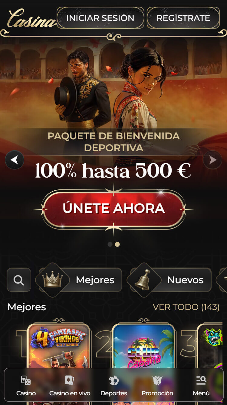 La plataforma de Casina tiene una estructura de navegación clara y organizada, que separa con éxito sus secciones de deportes, casino, torneos y niveles VIP. El sitio web es totalmente intuitivo y permite a los usuarios moverse con rapidez entre sus miles de opciones gracias a un sistema de pestañas lúdico y un buscador eficaz para localizar juegos o proveedores específicos.