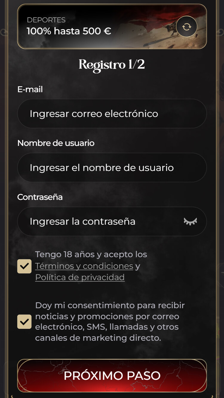 Para los nuevos usuarios, Casina casa de apuestas ofrece un atractivo paquete de bienvenida deportivo que bonifica el 100% de tu primer ingreso hasta un máximo de 500€. Para reclamarlo, es necesario registrarse en la plataforma, seleccionar esta oferta específica en lugar de la de casino y realizar un primer depósito que cumpla con el mínimo exigido en sus bases. Esta promoción está reservada exclusivamente para nuevos clientes que acaban de abrir su cuenta.
