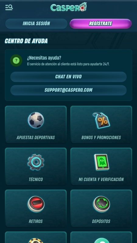 Caspero Casa de Apuestas brilla en el servicio de atención al cliente, ya que está bien organizado y ofrece todas las opciones que, como usuario, puedes necesitar. ¿Y dónde encontrarás todo esto? En su centro de ayuda, disponible en el menú principal.