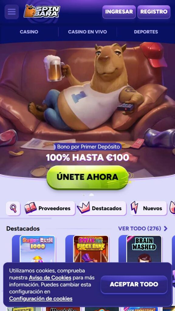 Atención cercana y servicio de atención al cliente 24/7. SpinBara te recibe con un bono del 100 % hasta 100 €, promos puntuales y apuestas en vivo con cuotas destacadas. Permite pagos con tarjeta, e-wallets y cripto.