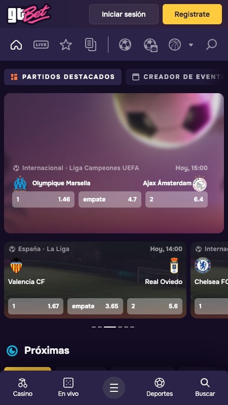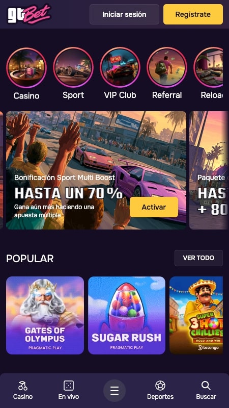 Abierta en 2025, la página de GtBet aparece con una estética fuertemente inspirada en el mundo de los videojuegos para dejarte bien claro que están aquí para traerte toda la emoción posible. Para ello, no dudan en proporcionar numerosas opciones para apostar, tanto en lo que se refiere a deportes como en mercados.