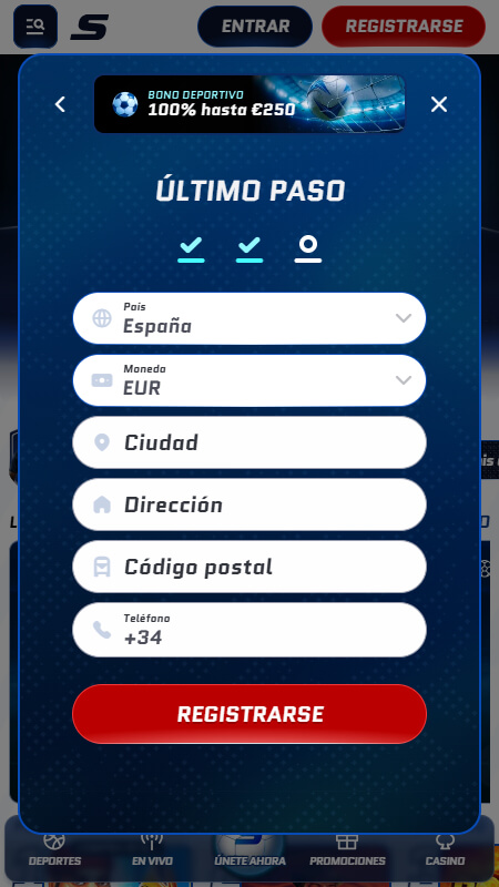 Finaliza el proceso y deposita dinero. Revisa que toda la información sea correcta y completa el registro. Cuando ya estés dentro puedes hacer el primer depósito y empezar a apostar.