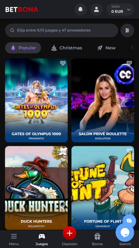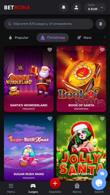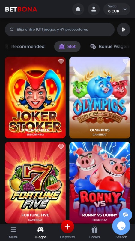 Hasta ahora hemos visto todos esos aspectos accesorios que le suman calidad a un casino online. No obstante, el corazón de una página como Betbona Casino se encuentra en su catálogo de juegos, y ese va a ser el punto a analizar ahora. ¿Qué nos hemos encontrado? De entrada, podemos decir que estamos ante una página bien surtida, con más de 9000 títulos diferentes repartidos en las categorías más habituales.