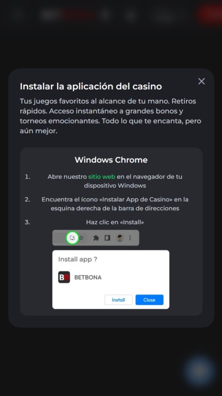 Algo que ya ha incorporado Betbona Casino, para que tengas más opciones a la hora de acceder a su casino online, es una app que podrás instalar sin problemas. De este modo, cualquier usuario podrá instalar Betbona Casino en su teléfono móvil para jugar cuando quiera y desde donde quiera.