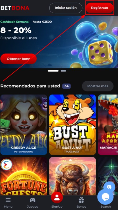 Una vez has examinado los bonos con los que Betbona te da la bienvenida, ha llegado el momento de que te registres en la página. ¿Y cómo puedes hacerlo? Tranquilo, que nosotros te lo contamos todo. De hecho, solo tienes que seguir los pasos que te vamos a indicar ahora, y enseguida estarás jugando. Toma nota: