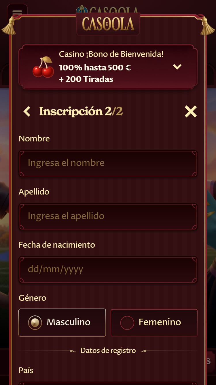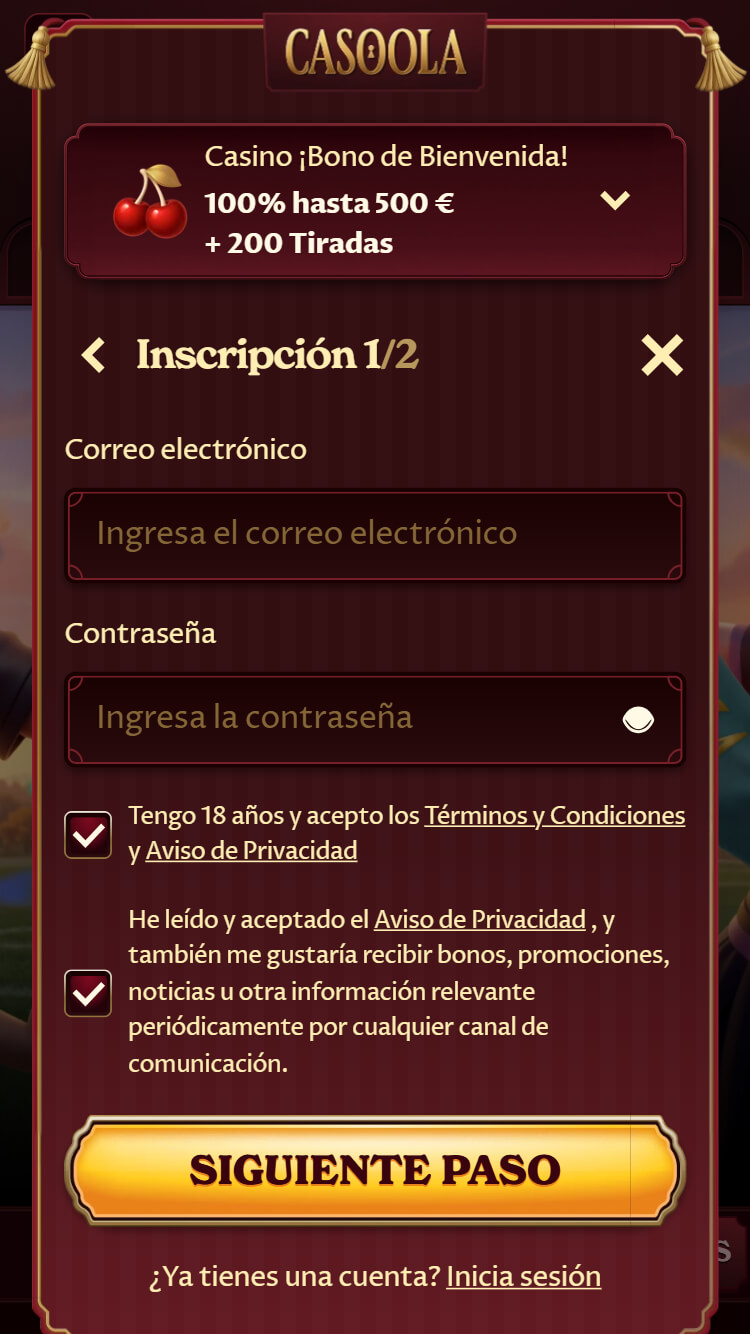 En su biblioteca podrás disfrutar de tragaperras, juegos con jackpots acumulados, clásicos juegos de mesa, novedosos instant games, una inmersiva sección de casino en vivo con crupieres reales y un apartado completo dedicado a las apuestas deportivas. Para unirte a la diversión, el único requisito indispensable es ser mayor de 18 años. El proceso de registro es rápido y te tomará apenas unos minutos: