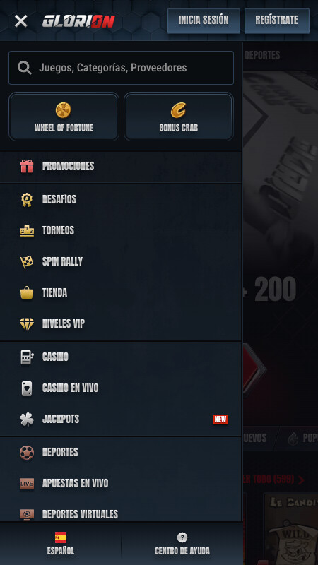 Glorion destaca, sin duda, por contar con un potentísimo catálogo de juegos que nos dará no pocas oportunidades de jugar y ganar. Y es que, gracias a una lista enorme de proveedores (que veremos luego), ha conseguido reunir títulos de gran calidad y variedad. Para acceder, solo tendrás que pasar por el menú principal y seleccionar la opción “Casino”.