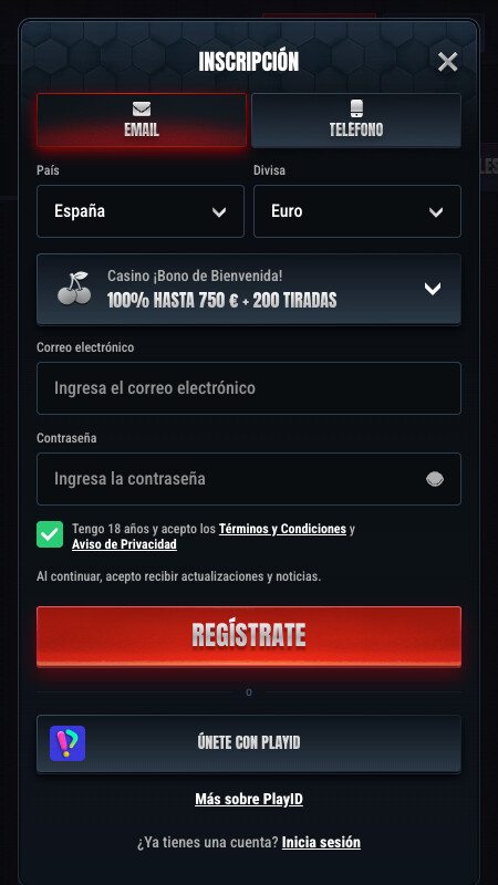 Consigue el 100 % hasta 750 € + 200 tiradas gratis