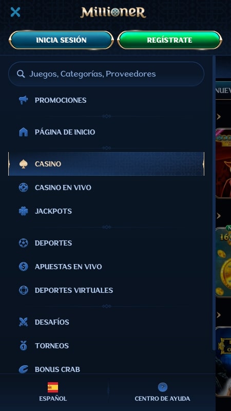 De entrada, eso sí, te decimos que no dispone de app. No te molestes en buscarla. Pero eso no es problema, porque tampoco la necesitas. La web de Millioner está muy bien optimizada, por lo que funciona a la perfección en todos los formatos. Da igual si quieres visualizarla en el móvil, donde la pantalla es pequeña y el formato es vertical. Los menús se adaptan, y te permiten seguir navegando con total naturalidad. En este sentido, el trabajo realizado es excelente.