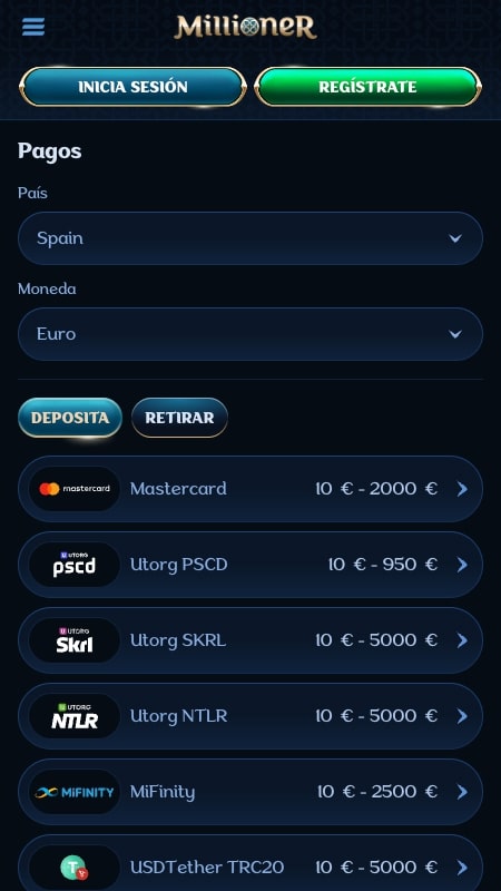 En lo que a depósitos y retiros se refiere, Millioner Casino nos va a proporcionar una variedad de opciones bastante interesante. Sí, es posible que eches de menos alguna, como PayPal, aunque eso es habitual en este tipo de páginas. Sin embargo, el operador ha montado una lista bastante completa, por lo que las alternativas no te van a faltar. Además, aquí hay que tener en cuenta que existen varios bonos dedicados a las criptomonedas y que, en este sentido, la variedad será muy amplia. Vale la pena tenerlo en cuenta.