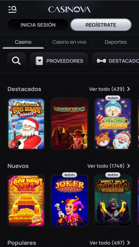 Casinova es un casino internacional con licencia de PAGCOR y Curazao, lo que le da base legal y reconocimiento frente a jugadores de todo el mundo. Su paquete de bienvenida puede sumar hasta 2 000 € en bonos repartidos en varios depósitos, un plus importante para quienes quieren explorar a fondo sin gastar demasiado al principio. Tiene miles de títulos, incluyendo tragaperras, mesas tradicionales y casino en vivo con crupieres reales.