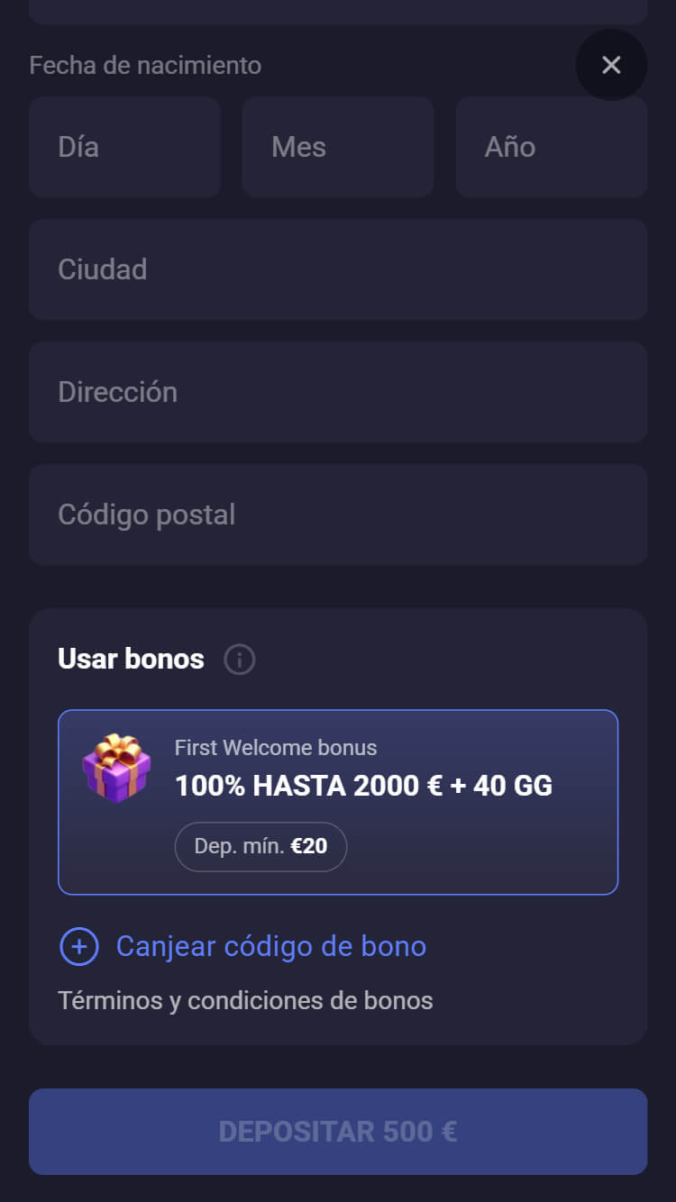 Ahora bien, hemos encontrado un requisito de apuestas bastante alto (x40–x50 según el bono). El mínimo para reclamarlo es de 20 €.