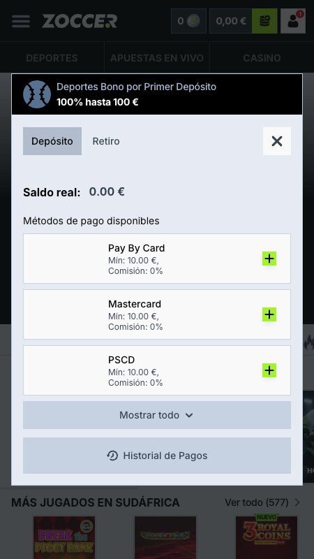 Depósitos y Retiros en Zoccer Casino4,5⭐️
